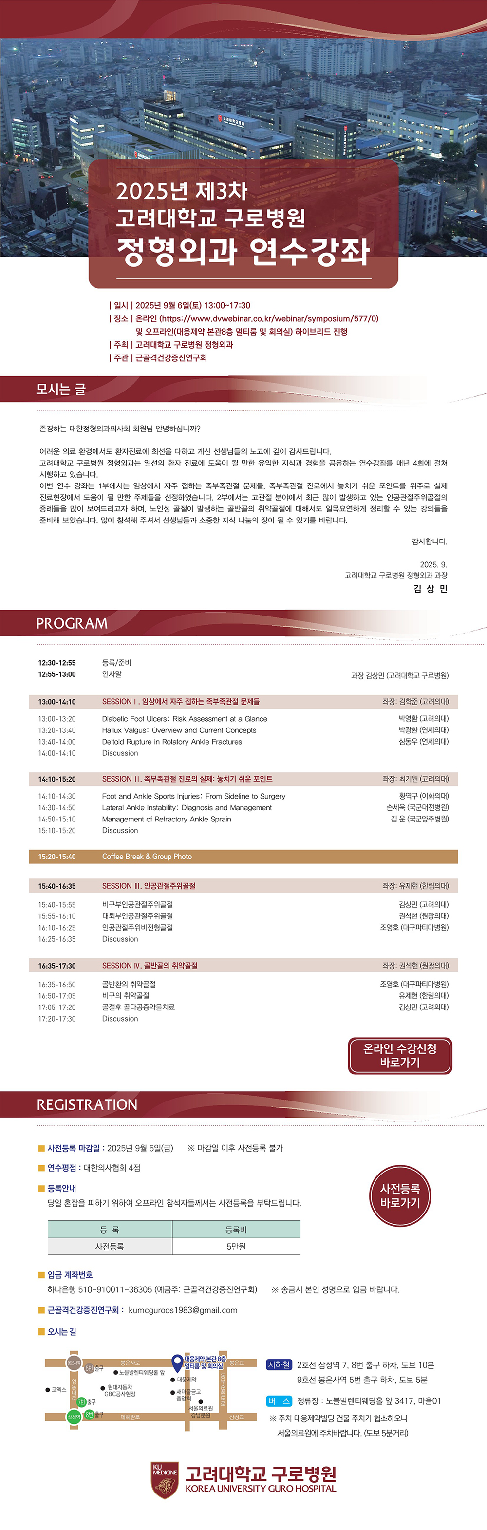 국내 학술행사 고대구로병원 정형외과 제3차 연수강좌 개최 학회사무실 2025-07-31 조회수 : 1020 Link URL : 첨부파일 고대구로병원 3차 연수강좌 팜플렛.pdf (다운 71건) 목록