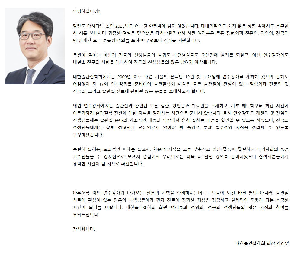 대한슬관절학회 2025 제17회 연수강좌
