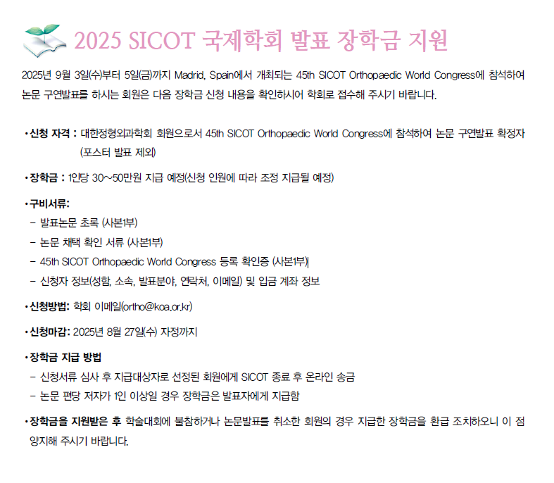 [학회] 2025 SICOT 국제학회 발표 장학금 지원 안내