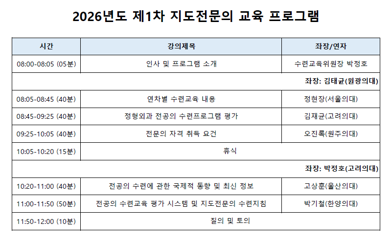 - 2026 대한정형외과학회 제1차 지도전문의 교육 신청 안내 -