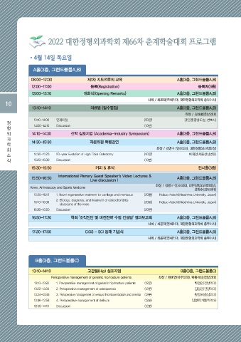 2022 대한정형외과학회 제66차 춘계학술대회 프로그램