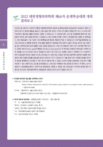 소 많았으나 대한정형외과학회가 성공적으로 학술대회를 개최할 수 있었던 것은 회원님들의 적극적인 참여와 협조 덕