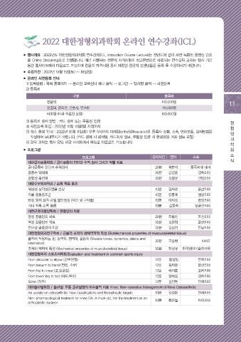 ■ 행사개요 : 2022년도 대한정형외과학회 연수강좌(ICL, Instruction Course Lecture)는 전년도와 같이 사전 녹화된 동영상 강의
