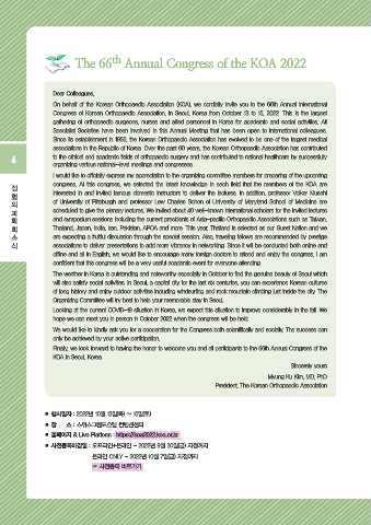 On behalf of the Korean Orthopaedic Association (KOA), we cordially invite you to the 66th Annual international