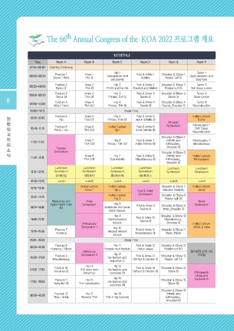 형 Fracture 6 Knee 6 Invited Lecture Foot & Ankle 6 Symposium Microsurgery 1