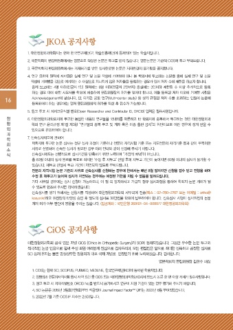 2. 정형외과 전문의자격시험 응시 자격 요건 중 CiOS 또는 대한정형외과학회(JKOA)에 반드시 논문 한 편 이상 게재가 필수사항입니다.
