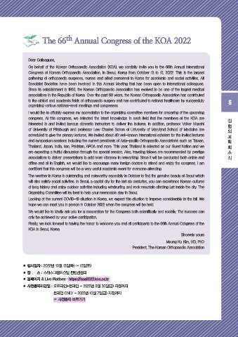 On behalf of the Korean Orthopaedic Association (KOA), we cordially invite you to the 66th Annual international
