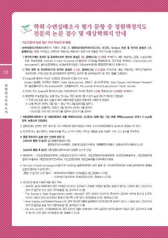 12 학회지이다. (기타 관련 및 분과학회지가 연구재단 등재지 및 등재후보지가 될 경우 1점을 인정한다.)