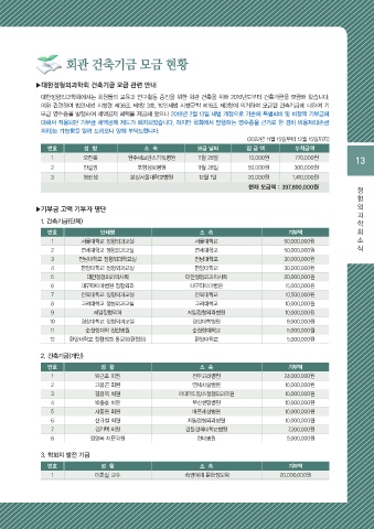 12 한양대학교 정형외과 동문회(한정회) 한양대학교 5,000,000원