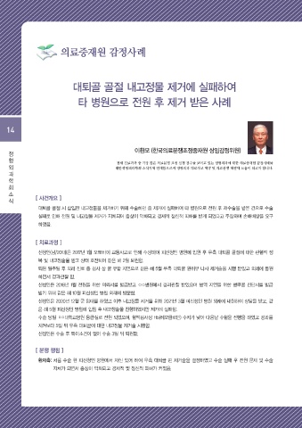 전체 진료과목 중 가장 많은 의료분쟁 조정 신청 건수를 보이고 있는 정형외과에 대한 의료중재원 감정사례를