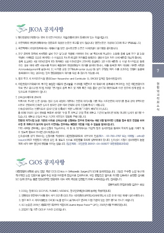 2. 정형외과 전문의자격시험 응시 자격 요건 중 CiOS 또는 대한정형외과학회(JKOA)에 반드시 논문 한 편 이상 게재가 필수사항입니다.