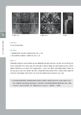 18%uc815%ud615%uc678%uacfc%ud559%ud68c%uc18c%uc2dd%u25b2 %uadf8%ub9bc 5- A, B%u25b2 %uadf8%ub9bc 6- A, B%u25b2 %uadf8%ub9bc 7[ %uc870%uc815 %uacb0%uacfc ]%ubcf8 %uac74%uc740 %uc870%uc815 %ud569%uc758%ud558%uc600%uc74c.[ %ucc38%uace0 %ubb38%ud5cc ]1. %ub300%ud55c%uc815%ud615%uc678%uacfc%ud559%ud68c, %ucd5c%uc2e0%uc758%ud559%uc0ac, %uc815%ud615%uc678%uacfc%ud559 8%ud310, 2020, p: 11662. %ub300%ud55c%uace0%uad00%uc808%ud559%ud68c, %uad70%uc790%ucd9c%ud310%uc0ac, %uace0%uad00%uc808%ud559 2%ud310, 2019, p: 132[ %uc608%ubc29 Tip ]%ucc99%ucd94%ud611%ucc29%uc99d%uc758 %uac10%ubcc4%uc9c4%ub2e8%uc740 %uc694%ucd94%uc99d, %ub3d9%ub9e5%uacbd%ud654 %uac19%uc740 %ub9d0%ucd08 %ud608%ud589%uc7a5%uc560%uc5d0 %ub530%ub978 %ud608%uad00%uc131 %ud30c%ud589, %ub9d0%ucd08 %uc2e0%uacbd %ubcd1%ubcc0, %uc694%ubd80 %ubcc0%uc131 %ud6c4%ub9cc%uc99d, %ud30c%ud0a8%uc2a8%ubcd1 %ubc0f %uace0%uad00%uc808 %uc9c8%ud658%uc774 %uc788%ub2e4%uace0 %uc54c%ub824%uc838 %uc788%uc74c. %ud2b9%ud788 %uace0%uad00%uc808 %uc9c8%ud658 %uc2dc %ud658%uce21%uc73c%ub85c %uccb4%uc911%uc744 %uc2e4%uc5b4 %uac78%uc744 %ub54c %ud1b5%uc99d%uc744 %ud638%uc18c%ud558%uba70 %uace0%uad00%uc808 %uc6b4%ub3d9%uc81c%ud55c%uacfc %ud328%ud2b8%ub9ad(Patrick) %uac80%uc0ac %uc591%uc131%uc778 %uacbd%uc6b0%uac00 %ub9ce%uc74c.(%ucc38%uace0%ubb38%ud5cc 1). %uadf8%ub7ec%ubbc0%ub85c %ucc99%ucd94 %uc9c8%ud658%uacfc %uace0%uad00%uc808 %uc9c8%ud658%uc744 %uac10%ubcc4%ud558%uae30 %uc704%ud574%uc11c%ub294 %ubcd1%ub825%uacfc %uc784%uc0c1 %uc99d%uc0c1 %ubc0f %uc9c4%ucc30 %uc18c%uacac%uc774 %uc911%uc694%ud558%uba70, %ud658%uc790 %ubc29%ubb38 %uc2dc %ubb38%ub2f5%uc744 %ud1b5%ud558%uc5ec %ud1b5%uc99d %uc591%uc0c1%uc744 %ud30c%uc545%ud558%uace0 %uace0%uad00%uc808%uacfc %uad00%ub828%ub41c %uc9c4%ucc30%uc744 %uc790%uc138%ud788 %ud568%uc73c%ub85c%uc368 %uace0%uad00%uc808 %uc9c8%ud658%uc744 %uc0ac%uc804%uc5d0 %ud30c%uc545%ud558%ub294 %uac83%uc774 %uc0c1%uae30%uc640 %uac19%uc740 %ubd84%uc7c1%uc744 %ubc29%uc9c0%ud558%ub294%ub370 %uc911%uc694%ud558%ub2e4%uace0 %ud560 %uc218 %uc788%uc74c.%u203b %ud55c%uad6d%uc758%ub8cc%ubd84%uc7c1%uc870%uc815%uc911%uc7ac%uc6d0%uc774 %ub300%ud55c%uc815%ud615%uc678%uacfc%ud559%ud68c%uc640 %uacf5%ub3d9%uc73c%ub85c %uc815%ud615%uc678%uacfc %uc758%ub8cc%ubd84%uc7c1 %uac10%uc815%uc0ac%ub840 %uc911 40%uac74%uc744 %uc120%uc815%ud558%uc5ec %u300c2019-2024 %uc758%ub8cc%uc911%uc7ac%uc6d0 %uac10%uc815%uc0ac%ub840%uc9d1%u300d%uc744%ubc1c%uac04%ud558%uc600%uc2b5%ub2c8%ub2e4. %ud574%ub2f9%uc790%ub8cc%ub294 %ud55c%uad6d%uc758%ub8cc%ubd84%uc7c1%uc870%uc815%uc911%uc7ac%uc6d0 %ud648%ud398%uc774%uc9c0%uc5d0%uc11c %ud655%uc778,%ub2e4%uc6b4%ub85c%ub4dc %ubc1b%uc73c%uc2e4 %uc218 %uc788%uc2b5%ub2c8%ub2e4. %u3010%ub2e4%uc6b4%ub85c%ub4dc %uc704%uce58 : %ud648%ud398%uc774%uc9c0(www.k-medi.or.kr) %u261e %uc54c%ub9bc%ub9c8%ub2f9 %u261e %uc790%ub8cc%uc2e4%u3011