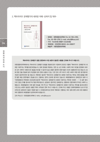 24%uc815%ud615%uc678%uacfc%ud559%ud68c%uc18c%uc2dd2. %ub9e5%ube0c%ub77c%uc774%ub4dc %uc7a5%uc560%ud3c9%uac00%uc758 %uc0c8%ub85c%uc6b4 %uc774%ud574 -%uc0c1%ud558%uc9c0 %ubc0f %ucc99%ucd94-%u2022 %ud310%ub9e4%ucc98 : %ub300%ud55c%uc815%ud615%uc678%uacfc%ud559%ud68c (Tel. 02-780-2765, Fax. 02-780-2767, E-mail. ortho5@koa.or.kr) %u2022 %uac00%uaca9 : 70,000%uc6d0 (%ud68c%uc6d0%uac00 30,000%uc6d0)%u2022 %uacc4%uc88c%ubc88%ud638 : %uad6d%ubbfc%uc740%ud589 269101-04-008077 (%uc608%uae08%uc8fc : %ub300%ud55c%uc815%ud615%uc678%uacfc%ud559%ud68c)%ub9e5%ube0c%ub77c%uc774%ub4dc %uc7a5%uc560%ud3c9%uac00 %ubc29%ubc95 %uad00%ub828%ud558%uc5ec %uc218%uc815 %ubcf4%uc644%uc774 %ud544%uc694%ud55c %ub0b4%uc6a9%uc744 %uac74%uc758%ud574 %uc8fc%uc2dc%uae30 %ubc14%ub78d%ub2c8%ub2e4.%ub300%ud55c%uc815%ud615%uc678%uacfc%ud559%ud68c%uc5d0%uc11c%ub294 %ub9e5%ube0c%ub77c%uc774%ub4dc %uc7a5%uc560%ud3c9%uac00 %ubc29%ubc95%uc744 %ud604%uc2e4%uc5d0 %ub9de%uac8c %uc218%uc815%ud558%uc5ec 2020%ub144 10%uc6d4%uc5d0 %u201c%ub9e5%ube0c%ub77c%uc774%ub4dc %uc7a5%uc560%ud3c9%uac00%uc758 %uc0c8%ub85c%uc6b4 %uc774%ud574%u201d%ub77c%ub294 %ucc45%uc790%ub97c %ubc1c%uac04%ud558%uc600%uc2b5%ub2c8%ub2e4. %uc7a5%uc560 %uc815%ub3c4%ub97c %ucd94%uc815%ud558%ub294 %uac83%uc740 %uc0c1 %uc18c%uacac %uc678%uc5d0%ub3c4 %uc0ac%ud68c%uc801 %uc5ec%ub7ec %uc5ec%uac74%uc744 %ubc18%uc601%ud574%uc57c %ud558%ubbc0%ub85c %ub2e8%uc9c0 %uc758%ud559%uc801 %uae30%uc900%ub9cc%uc73c%ub85c %uc815%ub2f5%uc744 %uc81c%uc2dc%ud560 %uc218 %uc5c6%uc73c%uba70 %uc784%uc0c1 %uacbd%ud5d8%uc774 %ud48d%ubd80%ud55c %uc804%ubb38%uac00%ub4e4%uc758 %uc758%uacac%uc774 %uc808%ucda9%ub418%uc5b4%uc57c %ud560 %uac83%uc785%ub2c8%ub2e4. %uc7a5%uc560 %ud310%uc815 %uc548%uc744 %ud604%uc2e4%uc5d0 %ub9de%uac8c %uac1c%uc120%ud568%uc5d0 %uc788%uc5b4 %ud604%uc7ac %uc0ac%uc6a9%ub418%uace0 %uc788%ub294 %uae30%uc874 %uc548%uacfc %ub108%ubb34 %ucc28%uc774%uac00 %ud06c%uba74 %uc0ac%ud68c%uc801 %uc800%ud56d %ub610%ud55c %uc99d%uac00%ud568%uc73c%ub85c %uac1c%uc120%uc740 %uc810%uc9c4%uc801%uc774%uc5b4%uc57c %ud560 %uac83%uc785%ub2c8%ub2e4. %ud559%ud68c%uc5d0%uc11c %ubc1c%uac04%ud55c %u201c%ub9e5%ube0c%ub77c%uc774%ub4dc %uc7a5%uc560%ud3c9%uac00%uc758 %uc0c8%ub85c%uc6b4 %uc774%ud574%u201d%ub77c%ub294 %ucc45%uc790%ub294 %ud604%uc7ac %ubc95%uc6d0%uc744 %ube44%ub86f%ud55c %ub9ce%uc740 %ubc30%uc0c1 %uad00%ub828%uc790%ub4e4%uc774 %uad00%uc2ec%uc744 %uac16%uace0, %uc778%uc6a9%ud558%ub294 %uacbd%uc6b0%ub3c4 %uc810%ucc28%ub85c %uc99d%uac00%ud558%uace0 %uc788%uc2b5%ub2c8%ub2e4. %ud68c%uc6d0%ubd84%ub4e4%uaed8%uc11c%ub3c4 %uc7a5%ud574%uc9c4%ub2e8%uc11c %ubc1c%ubd80 %uc2dc %u201c%ub300%ud55c%uc815%ud615%uc678%uacfc %ud559%ud68c%uc5d0%uc11c 2020%ub144%uc5d0 %ubc1c%uac04%ud55c %u201c%ub9e5%ube0c%ub77c%uc774%ub4dc %uc7a5%uc560%ud3c9%uac00%uc758 %uc0c8%ub85c%uc6b4 %uc774%ud574%u201d%ub77c%ub294 %ucc45%uc790%uc5d0 %uc758%ud558%uba74%u2026%u2026.%u201d %uacfc %uac19%uc740 %ud615%uc2dd%uc73c%ub85c %uc778%uc6a9 %uadfc%uac70%ub97c %uba85%uc2dc%ud574 %uc8fc%uc2dc%uae30%ub97c %ubd80%ud0c1%ub4dc%ub9bd%ub2c8%ub2e4. %uacf5%uc815%ud558%uace0 %ud569%ub9ac%uc801%uc778 %uc7a5%ud574%ud3c9%uac00%ub294 %uc815%ud615%uc678%uacfc %uc804%ubb38%uc758%uc5d0%uac8c %uc8fc%uc5b4%uc9c4 %uc0ac%ud68c%uc801 %uc18c%uba85%uc785%ub2c8%ub2e4. %ud68c%uc6d0%ubd84%ub4e4%uaed8%uc11c %ub354%uc6b1 %ub9ce%uc740 %uad00%uc2ec%uc744 %uac00%uc838 %uc8fc%uc2dc%uace0 %u201c%ub9e5%ube0c%ub77c%uc774%ub4dc %uc7a5%uc560%ud3c9%uac00%uc758 %uc0c8%ub85c%uc6b4 %uc774%ud574%u201d%ub77c%ub294 %ucc45%uc790%ub97c %ucc38%uace0%ud558%uc2dc%uba74%uc11c %uc218%uc815 %ub610%ub294 %ubcf4%uc644%uc774 %ud544%uc694%ud55c %ub0b4%uc6a9%uc740 %ud559%ud68c %uc0ac%ubb34%uc2e4%ub85c %uc5f0%ub77d %uc8fc%uc2dc%uae30 %ubc14%ub78d%ub2c8%ub2e4. %uac74%uc758%ud574 %uc8fc%uc2e0 %ub0b4%uc6a9%uc740 %uc7a5%uc560%uc704%uc6d0%ud68c%uc5d0%uc11c %ub17c%uc758 %ud6c4 %ud569%ub9ac%uc801%uc73c%ub85c %ubcf4%uc644%ud558%uc5ec %ub2e4%uc74c%ubc88 %uac1c%uc815%ud310 %ubc1c%uac04 %uc2dc %ubc18%uc601%ud558%ub3c4%ub85d %ud560 %uac83%uc774%uba70 %ud559%ud68c%uc5d0%uc11c %uc9c4%ud589%ub418%ub294 %uc5ec%ub7ec %uc7a5%uc560 %uad00%ub828 %uad50%uc721 %ud504%ub85c%uadf8%ub7a8%uc5d0%uc11c %uc5ec%ub7ec %uc815%ud615%uc678%uacfc %ud68c%uc6d0%ubd84%ub4e4%uacfc %uacf5%uc720%ud558%ub3c4%ub85d %ud558%uaca0%uc2b5%ub2c8%ub2e4.%uac74%uc758 %uc8fc%uc2e4 %uacf3 : %ub300%ud55c%uc815%ud615%uc678%uacfc%ud559%ud68c E-MAIL: ortho@koa.or.kr
